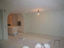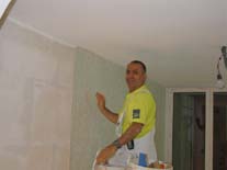 Innere Malerarbeiten, Wände mit Spezialtapeten tapeziert.